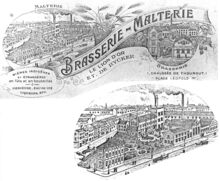 Briefhoofd van de brouwerij "Le Lion d'Or". Deze brouwerij was gelegen tussen de Torhoutsesteenweg (links) en de Warschaustraat (rechts) en werd uitgebaat door Etienne De Rycker.