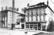 Het "HΓ΄tel Des Etrangers", Vlaanderenstraat 62. Uitgebaat door het echtpaar C. Van Gastel-Bayens