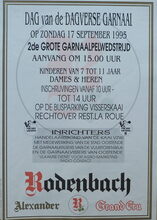 Formaat : 42 x 30 cm. - 4 juli : Seniorennamiddag. Cindy Nelson, Connie Neefs en Hugo Symons, Ostenschen avend. 5 juli : 14e rommelmarkt rond het Gerechtsplein, Kinderanimatie en optredens van : Dixieland Streetband, Melody Makers, Jameson en Power, Kovver