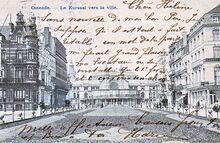 Postkaart L.L. - Ostende - Le Kursaal vers la ville. - De zuidgevel van de derde Kursaal gezien vanuit de Leopoldlaan
