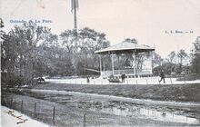 Le Bon, éditeur, Ostende, N° 91. - Ostende - Le parc Léopold. - Bijgekleurde kaart. - Links, de ijzeren brug die voor de verbinding zorgde tussen de Trinkhall en de fontein