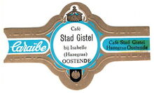 Oostendse sigarenbanden CaraΓ―be met reclame voor CafΓ© Stad Gistel op het Hazegras bij Isabelle