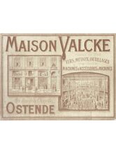 Op de afbeelding zien we een aquarel van de winkel Valcke in de Kapellestraat in het jaar 1892 - Aquarelle du magasin de la rue de la Chapelle en 1892
