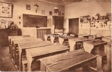 Postkaart Henri Georges. - Sint Jozefslyceum, Kaaistraat 16. - De gang naar de klaslokalen. - Informatie in : Annuaire commercial industriel et maritime d'Ostende et du Littoral. Unitas [1932], p.23