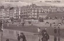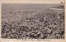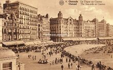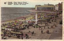 Postkaart Albert , N° 109. - Oostende - Vue générale. Plage et Kursaal. Oostende - Algemeen zicht. Strand en Kursaal. Ostend - General view. Sands and Kursaal. - De "Lido" op het Groot Strand. Op de achtergrond, de westelijke gevel van de vierde kursaal