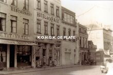Links op de hoek met de Antoon Belpairestraat, nr. 16 hotel café restaurant "Au Petit Vatel" ; nr. 18 "Hotel de la Paix" ; nrs. 20-24 niet herkenbaar, maar waarschijnlijk en onder voorbehoud op nr. 20 modehuis "Au Nouvautés de Nice" ; op nr. 22 "Café des Sports" en nr. 24 op de hoek met de Hertstraat "Au Vieil Ostende".