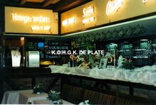 Fotocollage. - Formaat : 19 x 12.5 cm. - Klein drukwerk van horecazaken in de Langestraat