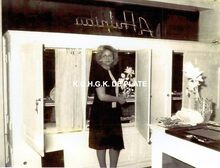 Formaat : 12,5 x 16,5 cm. - Langestraat 41B: Juwelierszaak Hulpiau op de hoek van de Langestraat en de Christinastraat. Mevrouw August Hulpiau in de winkel.