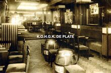 Formaat : 12,5 x 19 cm. Langestraat 32 : Binnenzicht op de toog van Taverne-Biljartzaal Ter Cuere.