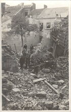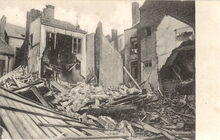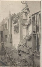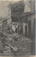 Marine Bücherei, Photographische Abteilung, Ostende. - Tijdens de beschieting van 22 september 1917 werd het hotel "Het Lammetje" in de Sint-Paulusstraat en de achterzijde van het koffiehuis Dufour in de Kerkstraat vernield.
