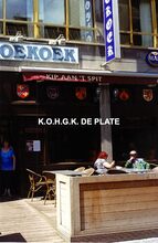 Formaat : 19 x 12,5 cm. - Langestraat 17 : Suite 18 (Klub Noir). Rechts, café "Hemingway" en links frituur "Bombay"