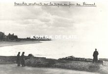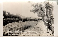 Foto : 8,5 x 12,5 cm. - Tranchée construite sur la digue en face du Kursaal. - Loopgraaf nabij het Kursaal. Op het einde het "Royal Palace Hotel".