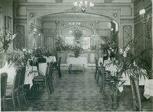Interieur van het Hotel des Ardennes gedurende het interbellumΒ