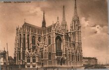 Formaat : 9 x 14 cm. - StΓ© Daveluy. Imp. Lith de la Cour,[Rue de la Chapelle], Ostende. - Ostende - La Nouvelle Γ©glise. - Kaart lichtbruin.