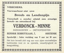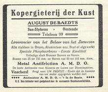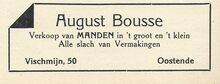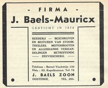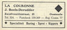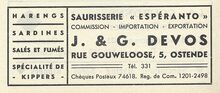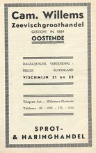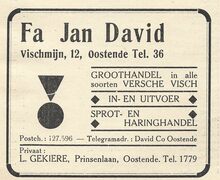 Fa Jan David. Vischmijn 12, Oostende. Groothandel in alle soorten versche visch. In- en uitvoer. Sprot- en haringhandel. Privaat : L. Gekiere, Prinsenlaan, Oostende