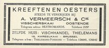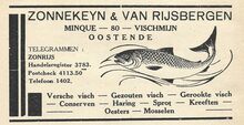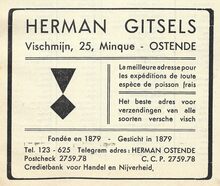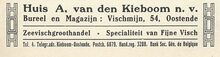 Bureel en magazijn : Vischmijn 54, Oostende. Zeevischgroothandel. Specialiteit van fijne visch.