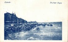 Formaat : 9 x 14 cm. - Edition V. Maréchal, 11, avenue des Chardons, Ostende. - Mariakerke-Ostende - Le départ du véhicule amphibie. Mariakerke-Oostende - Vertrek van het "amphibie" voertuig. - Met opschriften : Douglas. Excursions en mer. Uitstapjes op zee. prix 25 fr. 40 pers.