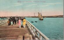 Formaat : 9 x 14 cm. - Marco Marcovici, Bruxelles. N°2 c. - Ostende - L'Estacade et le Chenal. - Veel volk op het weststaketsel. Een vissersvaartuig vaart binnen. Twee jollen, meestal geroeid door gepensioneerde vissers, zorgen voor de verbinding met de oosteroever.