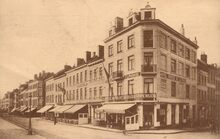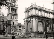 Formaat : 12,5 x 17,5 cm. - Het vernielde postgebouw in de Hendrik Serruyslaan. Rechts, de Poststraat.