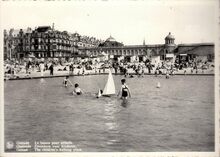 Formaat : 105, 15 xm. - Nels "Bromurite". - Ostende - Le bassin pour enfants. Oostende - Zwemkom voor kinderen. Ostend - The children's bathing place. - Gelegen tegenover de Venetiaanse Gaanderijen.