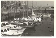 Foromaat : 7 x 10,5 cm. Pleziervaartuigen in het Montgomerydok. Links de Visserskaai.