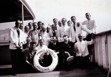Zittend op de rand, rechts, R. Delmotte. Onderaan zittend, tweede van rechts, Harold Vanhaelst en derde, chief-steward, Emiel Vyiane