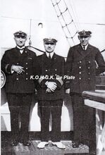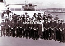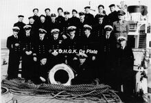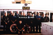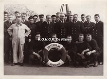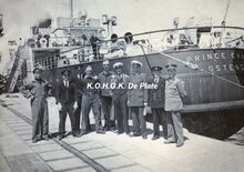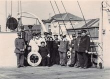 Foto (kopie) : 29.5 x 21 cm. Met commandant Deketelaere en o.a. bootsman, Frans Mertens, met eretekens, achter de commandant en Maurice Vermoote, derde persoon van links op de laatste rij.