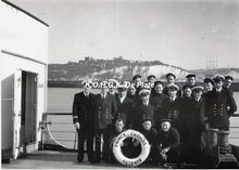 Foto (kopie) : 29.5 x 21 cm. - De bemanning van de pakketboot "Prinses Paola" met commandant Libert