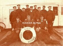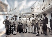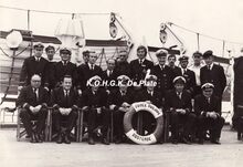 Zittend op de rand, uiterst rechts, R. Delmotte. Onderaan zittend, tweede van rechts, Harold Vanhaelst, derde, chief-steward, Emiel Vyiane. (gegevens van Arne Pyson)
