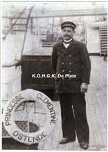 Foto 29.5 x 21 (kopie). V.L.N.R. Vanagt R (1ste luitenant) Holthof G (Commandant) Descheemaeker A ( 1ste marconist) , De La Rue P (2de luitenant) Goethaels a (Purser)