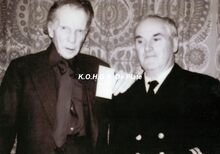 Afdruk, formaat : 29.5 x 21 cm. Van links naar rechts : Stekete Fr. (luitenant), Floridor J. (commandant), Goderis Jim (luitenant) en Vanblaere Marcel (eerste marconist)