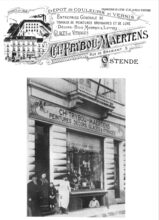 De schilderwinkel Trybou-Maertens, huisnummer 14. Boven, een briefhoofd, toen was de winkel huisnummer 5.