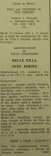 Advertentie : Etude du notaire P. van Tieghem de Ten Berghe. Vente publique. Belle villa avec jardin. Elisabethlaan 171