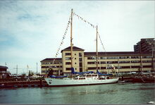 Formaat : 10 x 15 cm. - De Nele in het Visserijdok aan de Hendrik Baelskaai