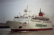 Formaat : 10 x 15 cm. Carferry "Wisteria" in de kleuren van Trans Europa Ferries