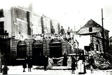 Afdruk. - Formaat :Β 10 x 14 cm.Β "De gemeenteraad van 4 decemberΒ 1906 beslistte de afbraak van de schouwburg. Dit werk werd toegewezen aan de heer Lust voor de som van 860 fr. Enkele dagen nadienΒ gestart, werd de afbraak in aprilΒ 1907 beΓ«indigd" Het Marie-JosΓ©plein / Jean Marie Bekaert. In : de Plate 1993, p.212
