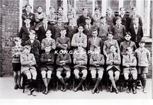 Foto 15 x 10. De zesde latijnse klas van het O.L.V.College 1929-1930. Zittend v.l.n.r. Van de Broecke - Montballieu Pierre - Vercarre Alfons - De Boodt Hubert - Mason Lucien - Ouwael Fernand - Olivier Albert. Op de 2de rij Everaert Roger - Maes Julien - Van Iseghem Albert - De Vlieghere Aimé - De Wulf - Van de Bussche - De Clerck Emile - Mancelle Armand - Ketels André. Op de 3de rij Opsomer Emile - Bultiaux Albert - Lefèvre Albert - Defevere Albert - Uytenhove - Dezutter - Proot André - Reynders Pierre . Op de 4de rij Van Leenhove - Mermus Emile - Van Huyse Jacques - Gosse Julien - Soenen Guido - De Zot Jules - Constant Albert - Mazijn Robert - Beelaere Albert - Duchène Alnert