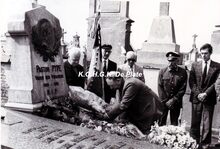 Formaat : 18 x 13 cm. - . Jaarlijkse herdenking Paster Pype aan zijn graf op het oud kerkhof Nieuwpoortsesteenweg (nu Paster Pype begraafplaats). Links aalmoezenier Jan Corneillie