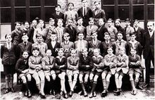 Foto 15 x 10. Zevende leerjaar van de Albertschool 1937. V.l.n.r. zittend Vandekieboom Theo - Masschalck Edgard - Bracks Gustaaf en Lingier Charles. Staand op de 2de rij Hans ?(Duitser) - Peene Fernand - Lingier - Laleman - ? - Maeckelberghe (een jongen uit De Haan) - Bonne Armand - en meester Corveleyn Emiel. Op de 3de rij Stoops Eddy - Bourgogne André - Deconinck André - Vantroostenberghe René - Panesi Albert - Arix Gilbert