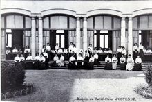 Foto : 18 x 12 cm. - Maison du Sacré-coeur d'Ostende. Prestigieus meisjespensionaat van de Zusters van het Heilig Hart (sacré-coeur) van 1905 tot 1955, nu H.T.I.