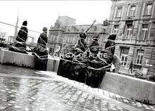 Formaat : 13 x 18 cm. - De beeldengroep "De Vissersvrouwen" van August Michiels werd ingepakt om te verplaatsen wegens de renovatie van het Stationsplein