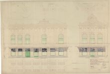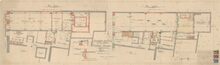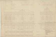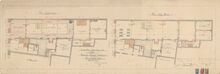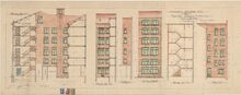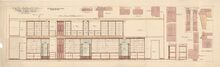 Gekleurd. Gevels en doorsneden eigendom SEO Ieperstraat 14 voor verbouwing.