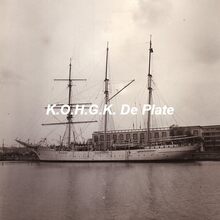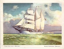 Formaat : 7 x 9,5 cm. -Β Roer en naambord van de "Mercator"