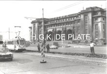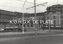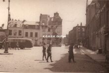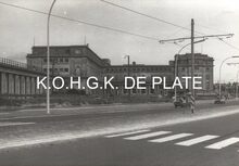 Foto : 10 x 15 cm. Gezien vanuit de Koningin Astridlaan. Er wordt aan de tramsporen gewerkt