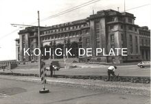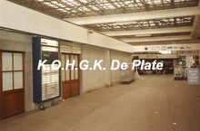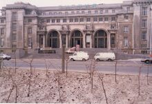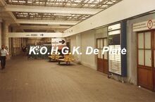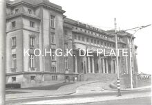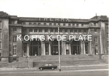Foto : 15 x 10 cm. - De hoofdingang, gelegen langs de Koningin Astridlaan, tijdens renovatiewerken.
