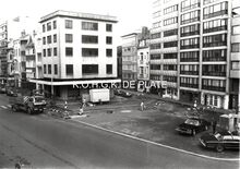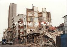 Formaat : 9 x 13 cm. - Afbraak van het "Hotel Bel-Air". Nu het toerismebureau , Monacoplein 2. Met zicht op de Van Iseghemlaan en de woontoren "Europacentrum".