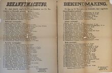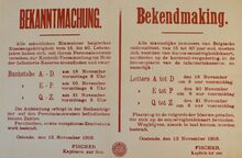 Formaat : 56 x 87 cm. Kennisgeving uitgaande van Plaatscommandant Fischer van de lijst van personen gedood, zwaar gewond en lichtgewond tijdens het bombardement van 15 november 1916