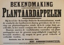 Formaat : 31 x 43 cm. Kennisgeving uitgaande van het gemeentebestuur betreffende het stopzetten van levering van plantaardappelen