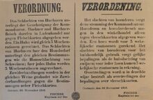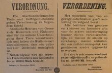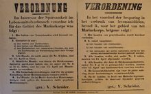 Formaat : 36 x 55 cm. Kennisgeving uitgaande van von SchrΓΆder betreffende het bezit van honden in het gebied van het Marinekorps