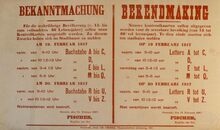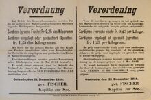 Formaat : 36 x 55 cm. Kennisgeving uitgaande van Kapitein ter Zee Fischer betreffende de hoogste prijs van aardappelen